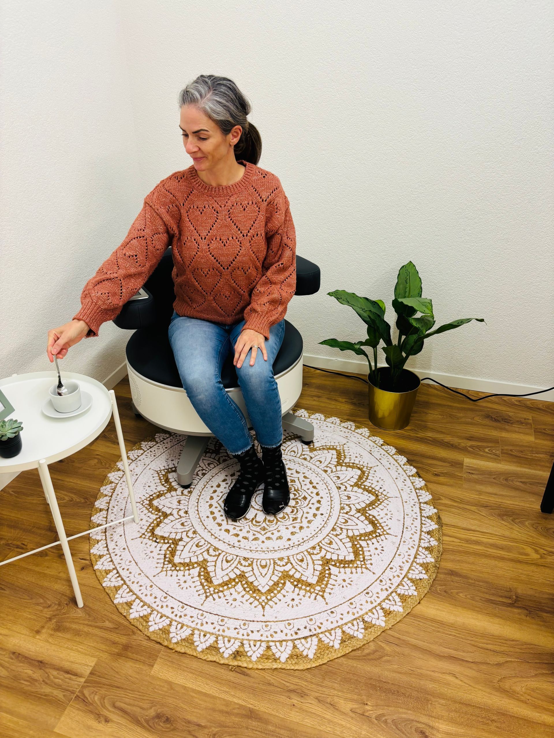 Du erhältst deine kostenfreie Probesitzung auf dem BetterPelvi Beckenbodenstuhl und bekommst dazu ein Kaffee , Tee oder Wasser.